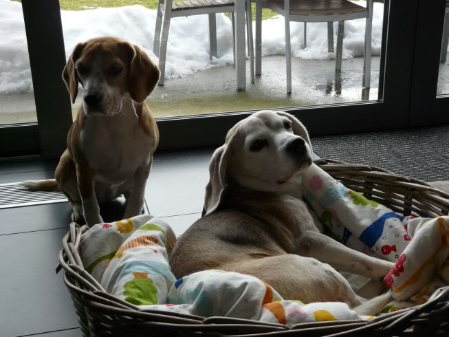 Dit is onze bench. Hier slapen we gezellig samen in 's nachts. Er liggen maar liefst drie dekentjes in. De bazin heeft ze vandaag nog eens lekker gewassen